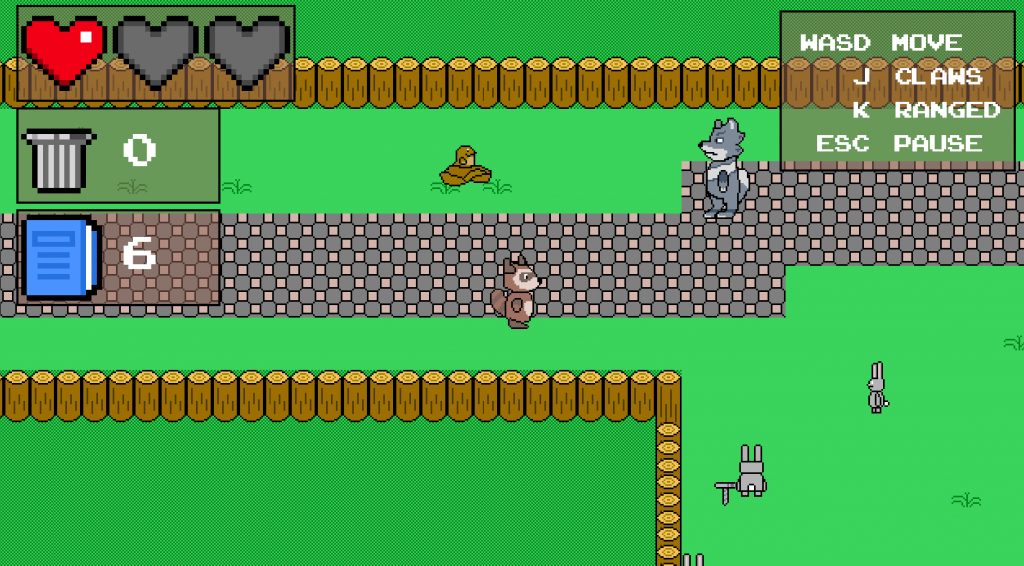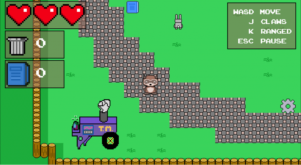 A 2D game about survival, where you must take on the role of a raccoon, find necessary parts around the park, and fend off other enemies.